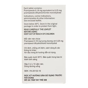 Sifrol 0.25mg trị Parkinson (3 vỉ x 10 viên)