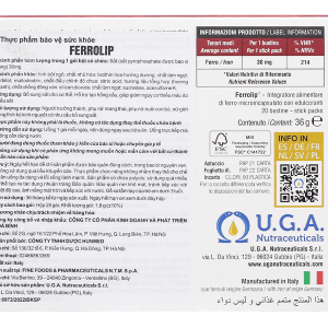 Bột Ferrolip bổ sung sắt cho cơ thể, giảm nguy cơ thiếu máu do thiếu sắt hộp 20 gói x 1.8g